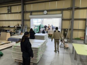 デスクブース約50台現場で組み立てる為パネルとデスク部分を別々に積み込みます。