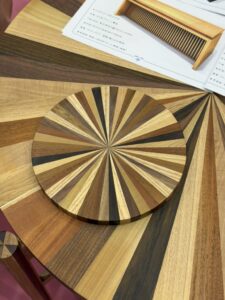 大蔵木材さんではその端材を利用して写真の様なテーブル天板を作っていました。
