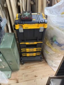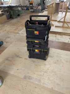 この道具箱はそれぞれの箱がスタッキング出来き台車にも固定できるみたいです。