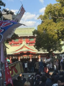 参道に並んすぐに年が明けまして 並ぶ事1時間ようやく神社の本殿前に