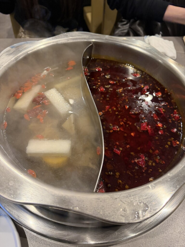 牛骨スープは優しいお味で麻辣スープは結構辛かったですが
